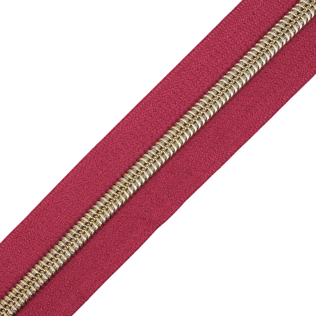 Reddish Pink | #5 Light Gold Zipper by the Yard - 3 Yard Singles