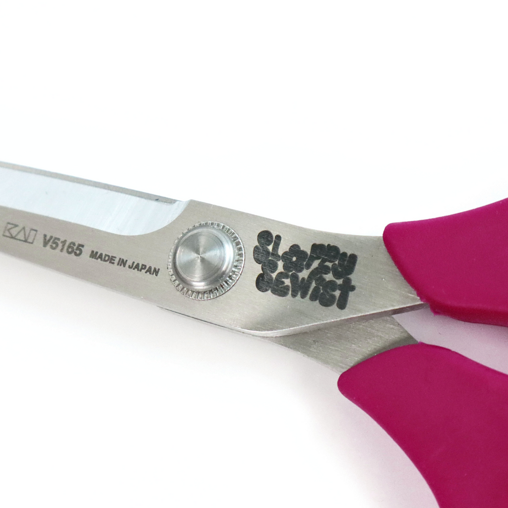Custom laser engraved Kai Scissors with "Sloppy Sewist" on all scissors.