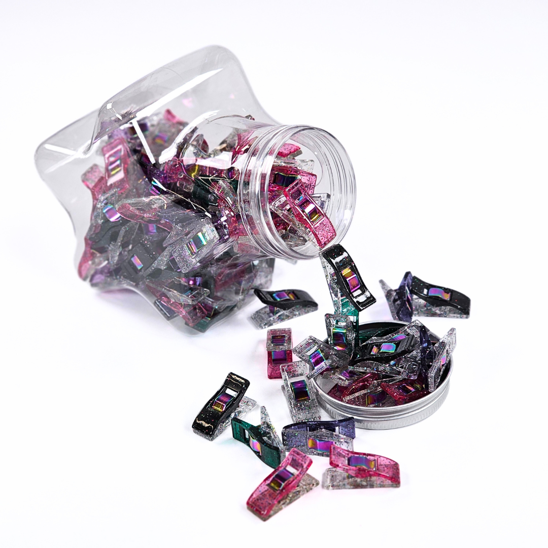 More Me Know Glitter Clips were designed in 2021. I was sewing, using the standard clips and had an epiphany. What if these were rainbow metal? What if they had glitter? What if they were some of the cutest colors imaginable?