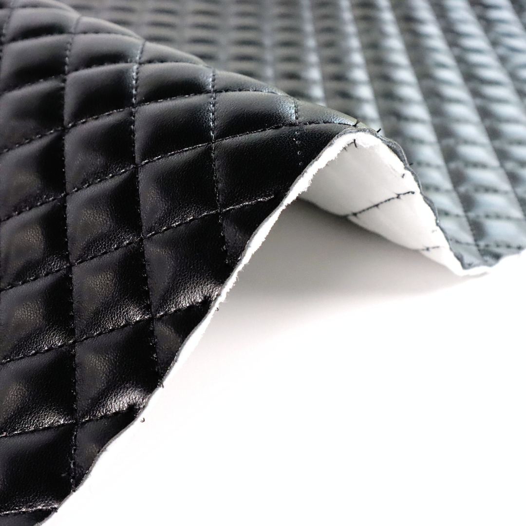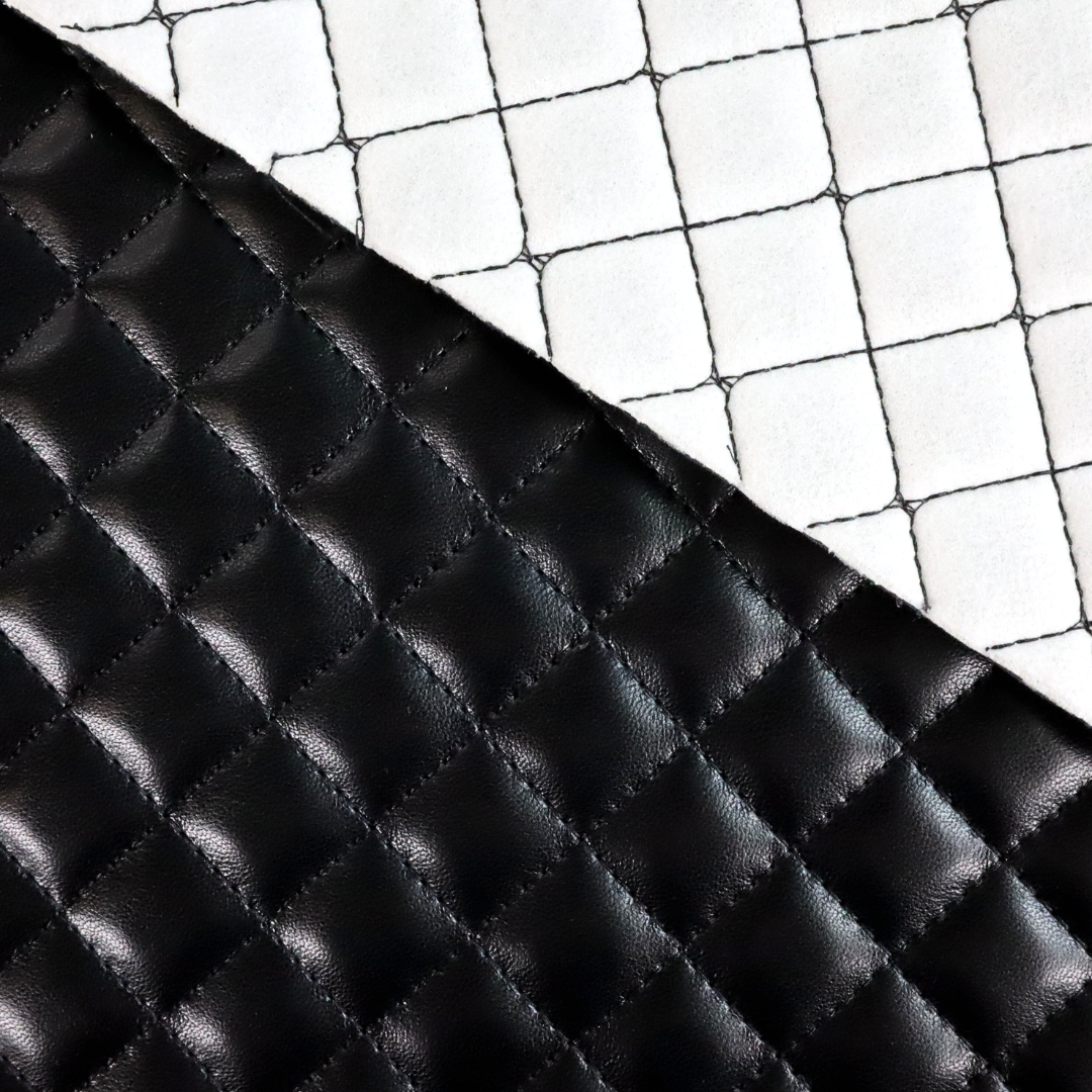 This Pre-Quilted Vinyl is prepped and ready to go! 7/8th inch pre-quilted squares on a soft and supple vinyl with a leather-like feel. Please note when the vinyl is cut the stitching could come undone. We recommend basting around pattern pieces once cut to prevent unraveling. Note - the backing may melt with heat so use caution when interfacing.ย