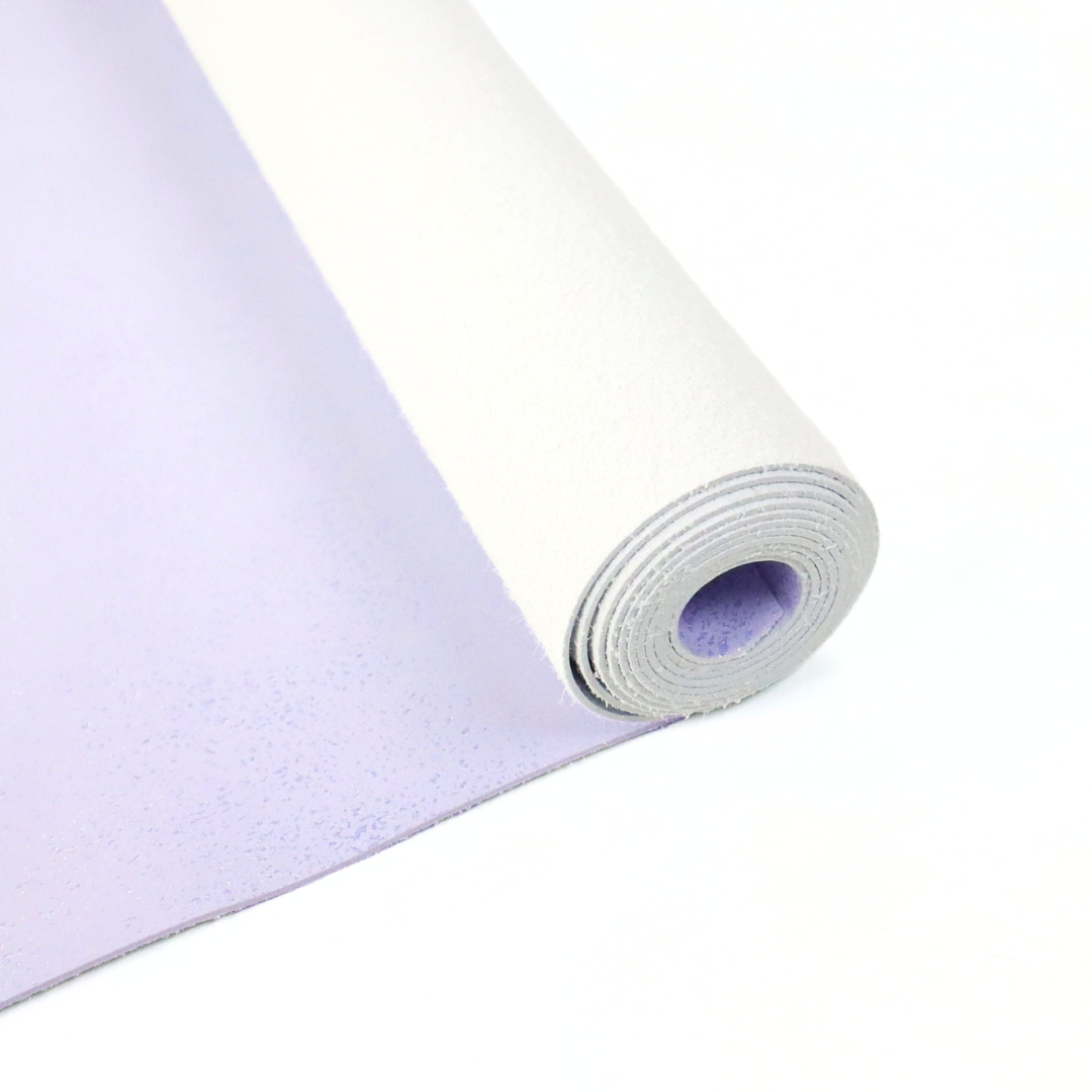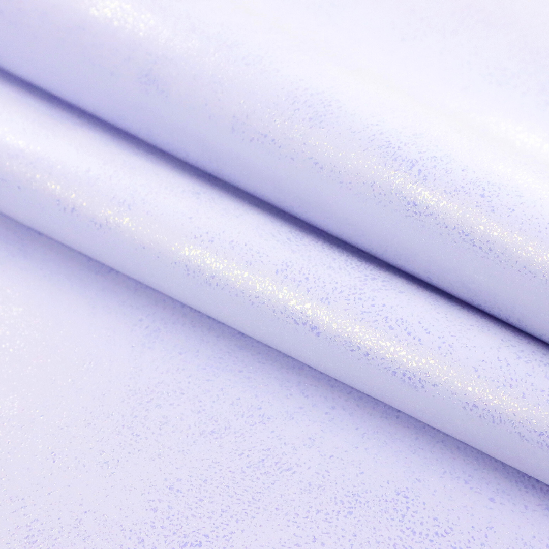 This luxe vinyl is in a lovely shade of light blue with an iridescent coated knockdown-like texture. It looks similar to the Rumi Purple Iridescent Knockdown Luxe vinyl but is bluer.