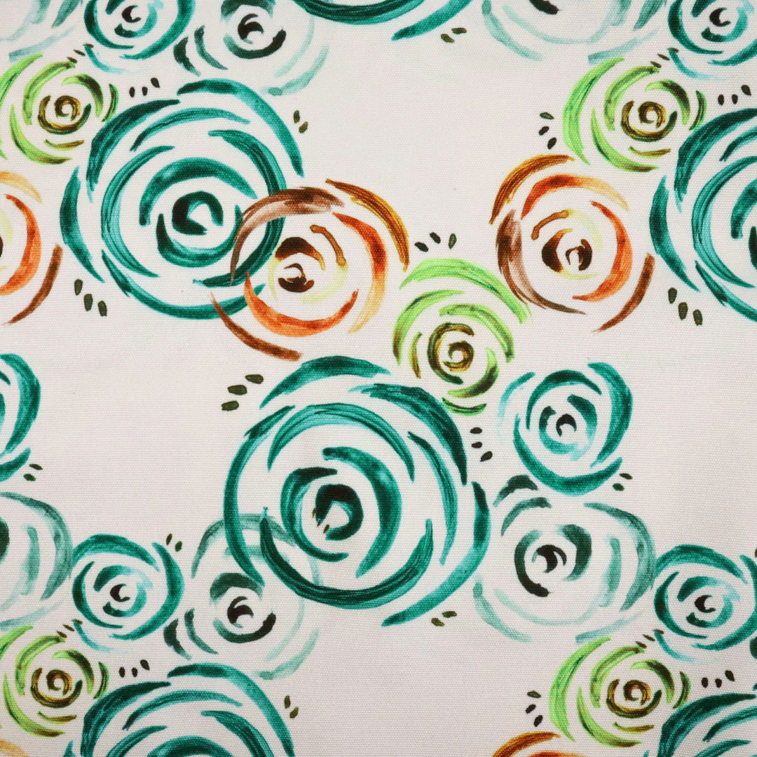 This ReNew Canvas print is of Lauren Mormino's original rose flower design in the "Neutral Roses" color variation (green, teal, and orange roses on a cream background).