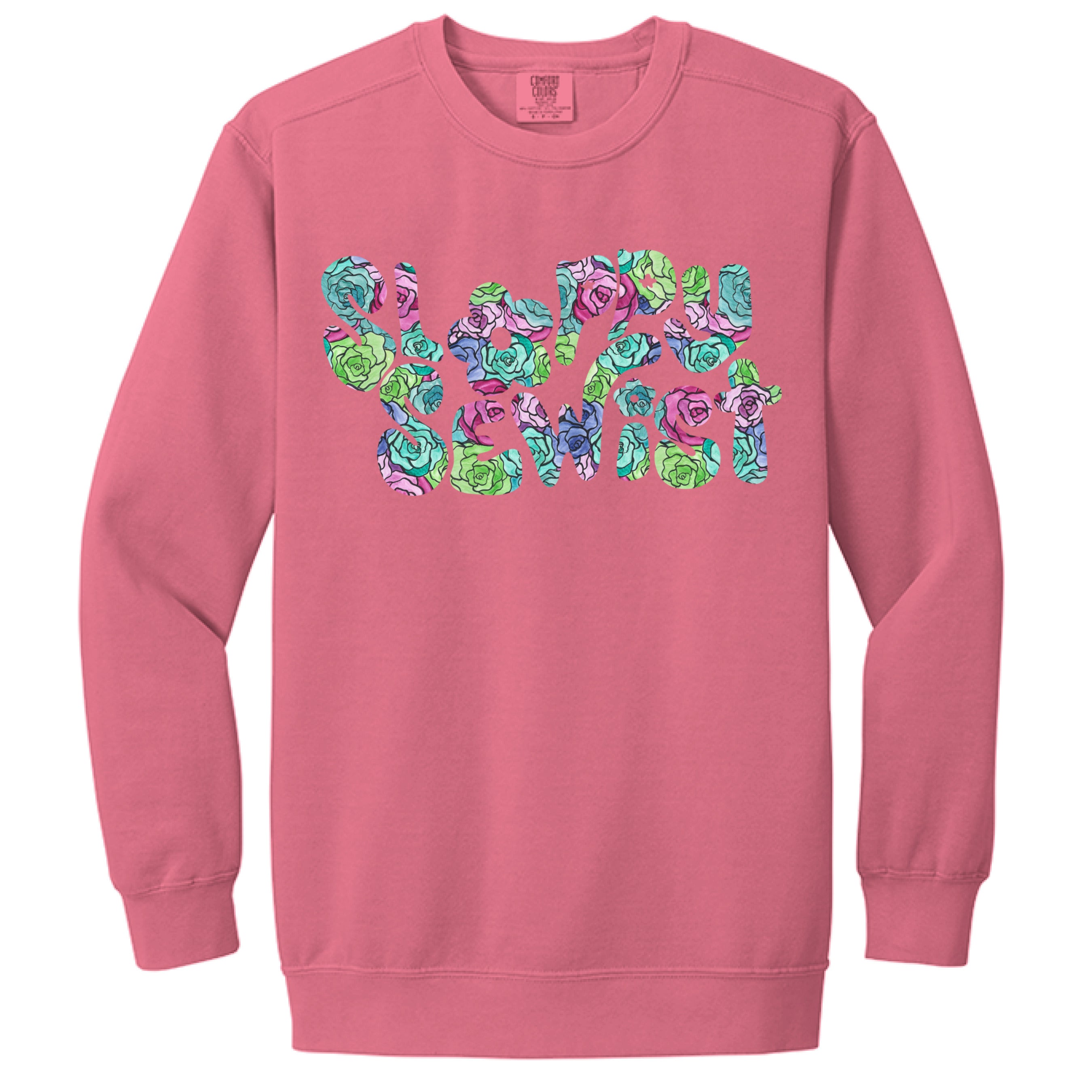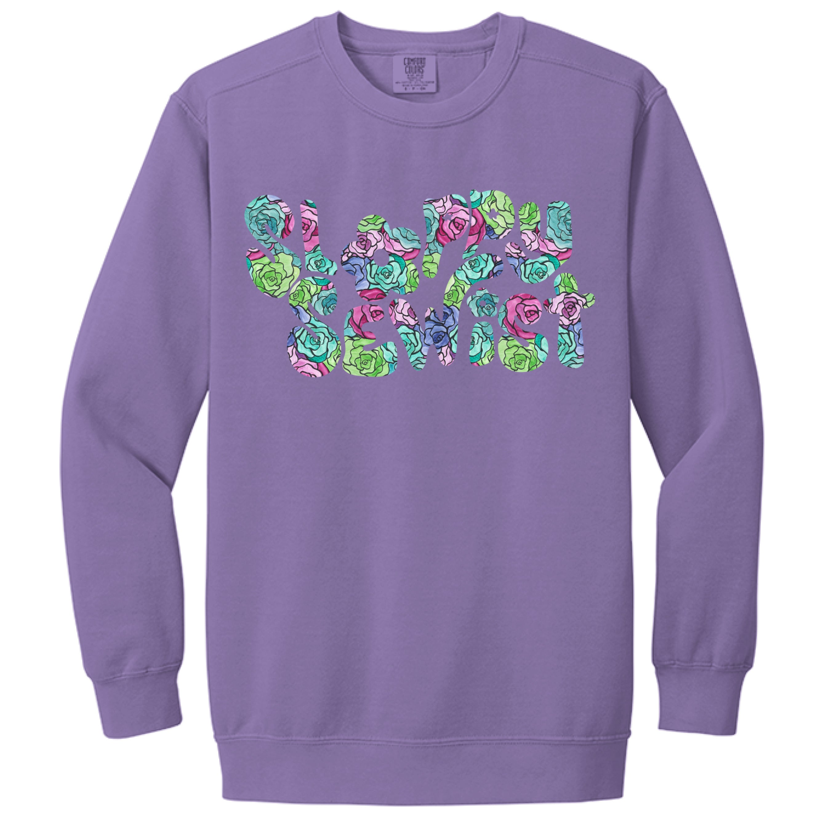 "Sloppy Sewist" Stained Glass Roses - Comfort Colors 1566 Adult 9.5 oz. Crewneck Sweatshirt