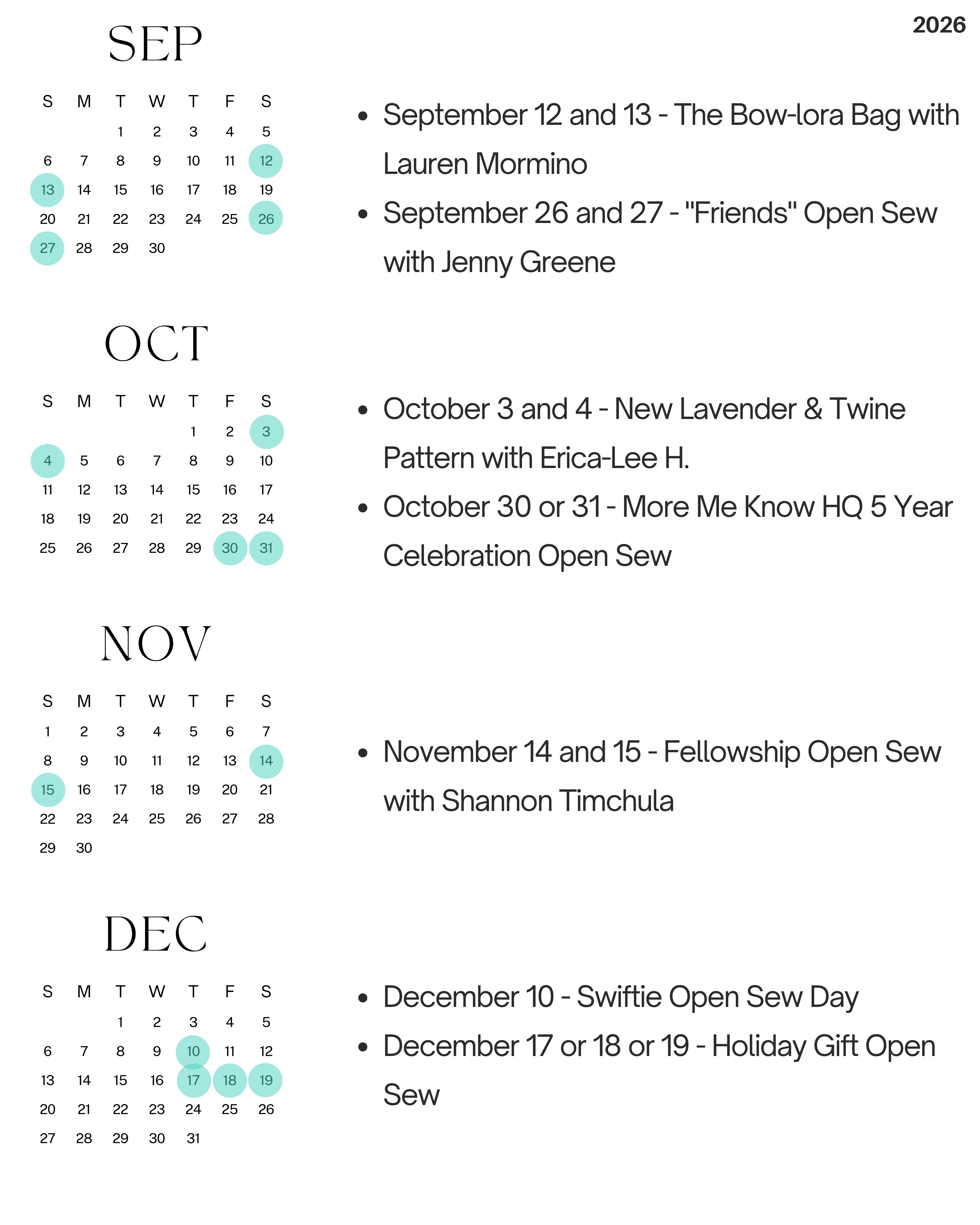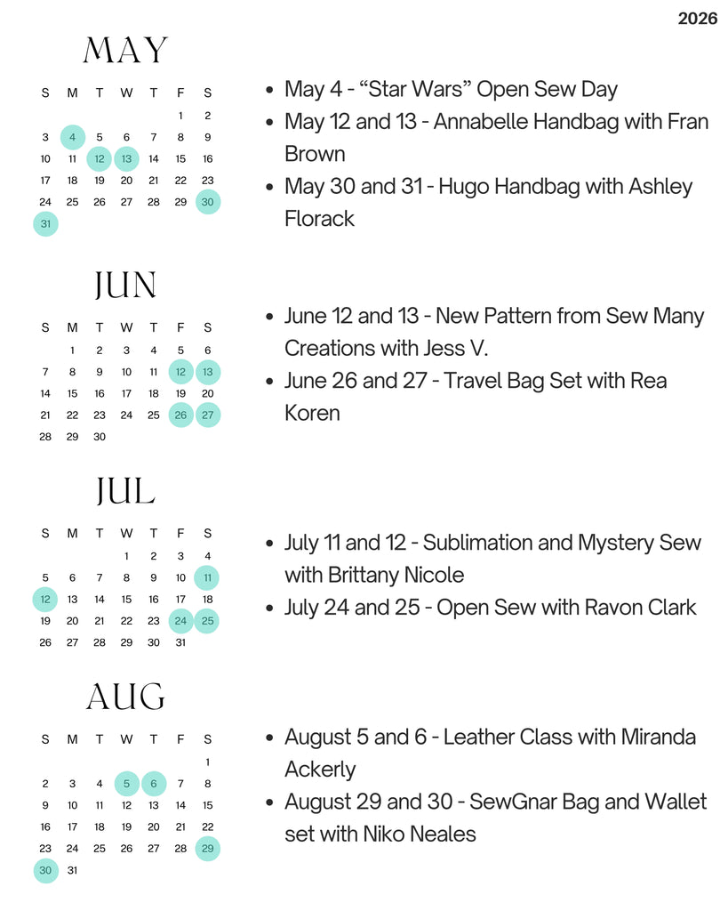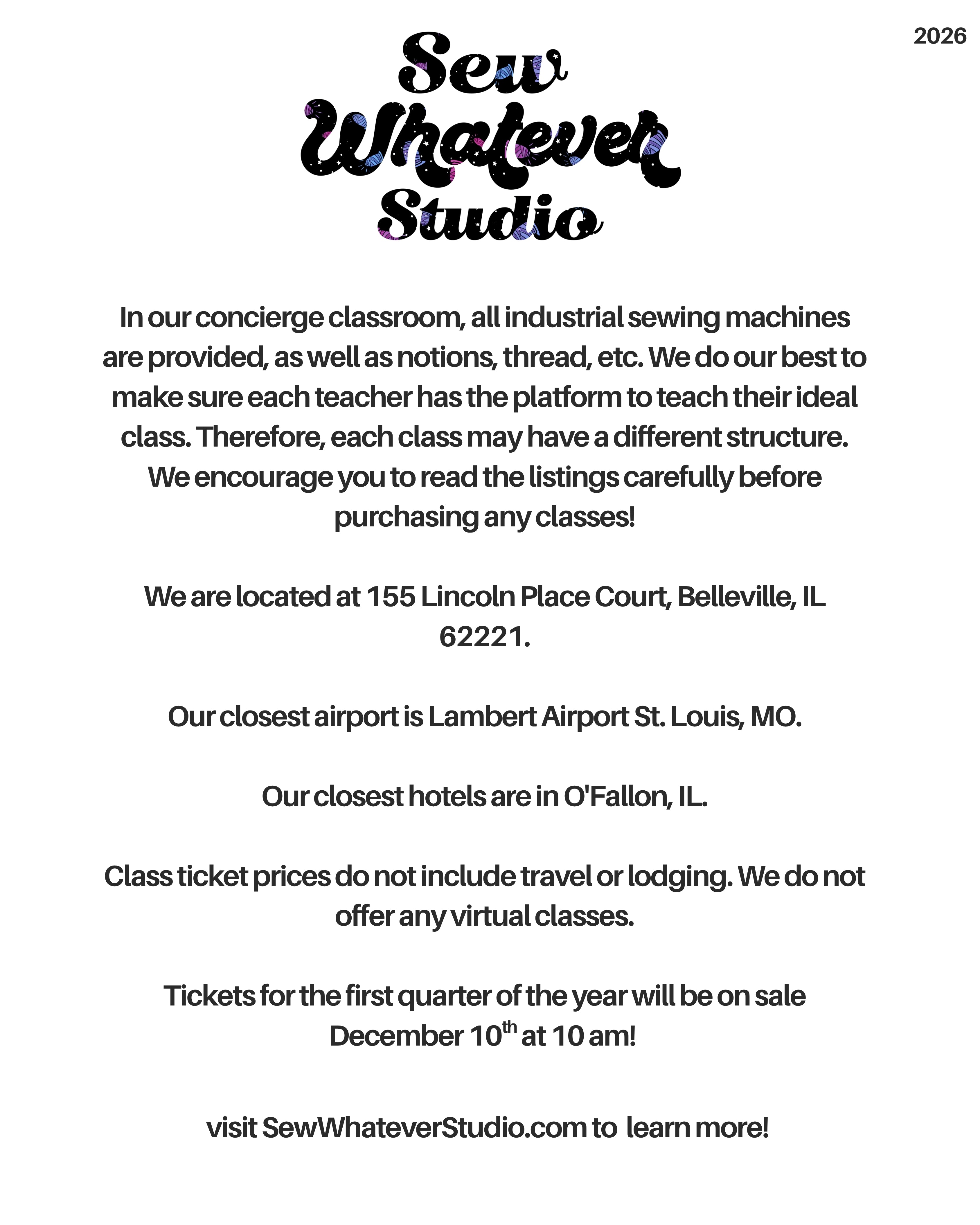 Our goal is to provide a stress-free class space to learn bagmaking. We do not want any students to feel rushed or like they weren't able to get their questions answered. We have worked tirelessly to make sure this is a safe and welcoming space to all who enter. <3 We thank you for your trust and support and cannot wait to see you there!