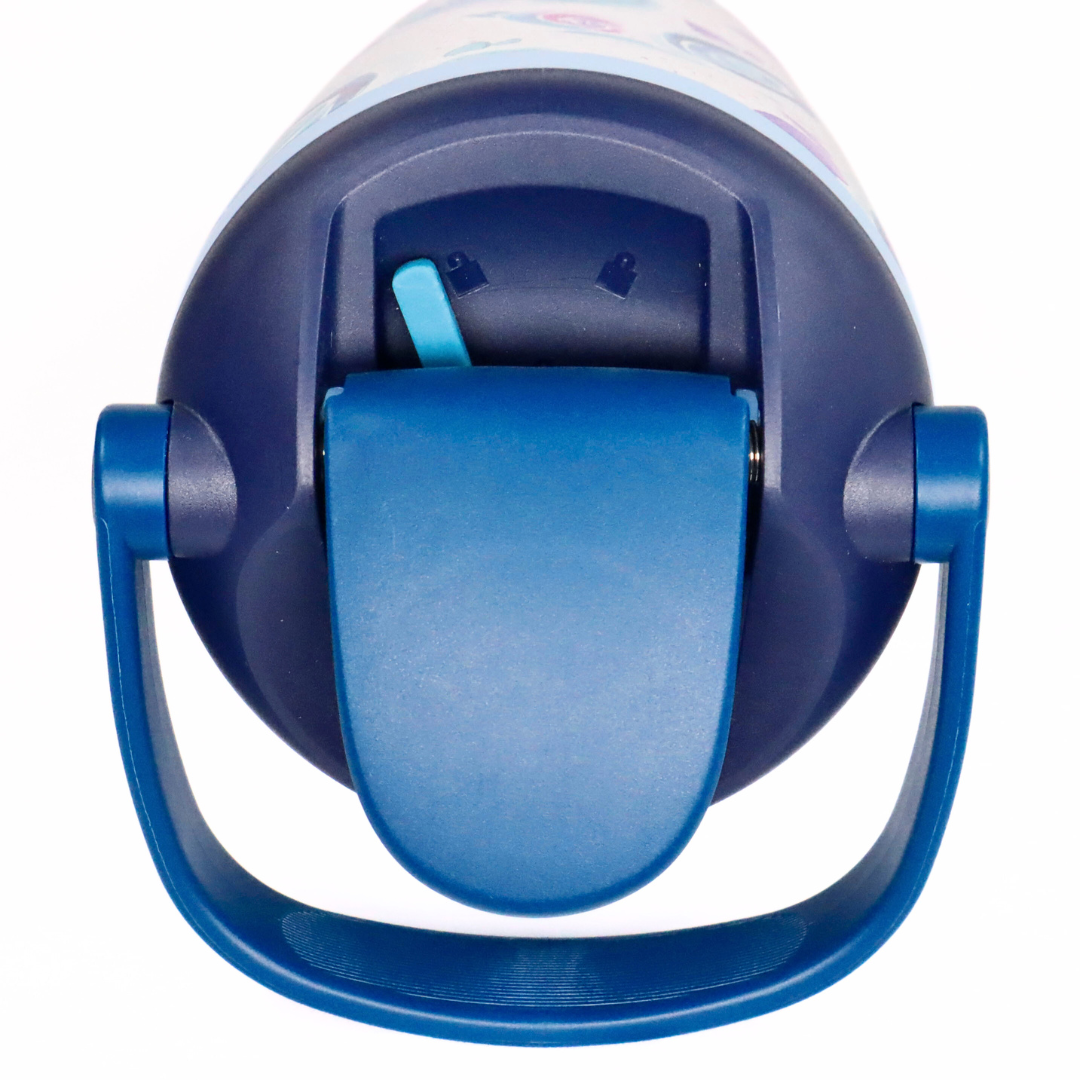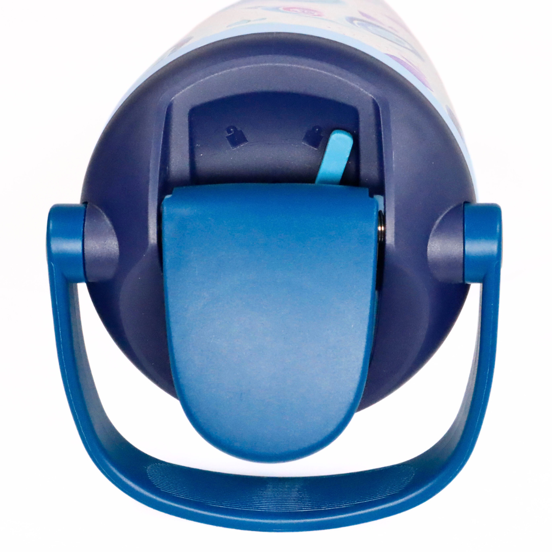 Push-to-open button lid with a lock (to help keep the spout clean)