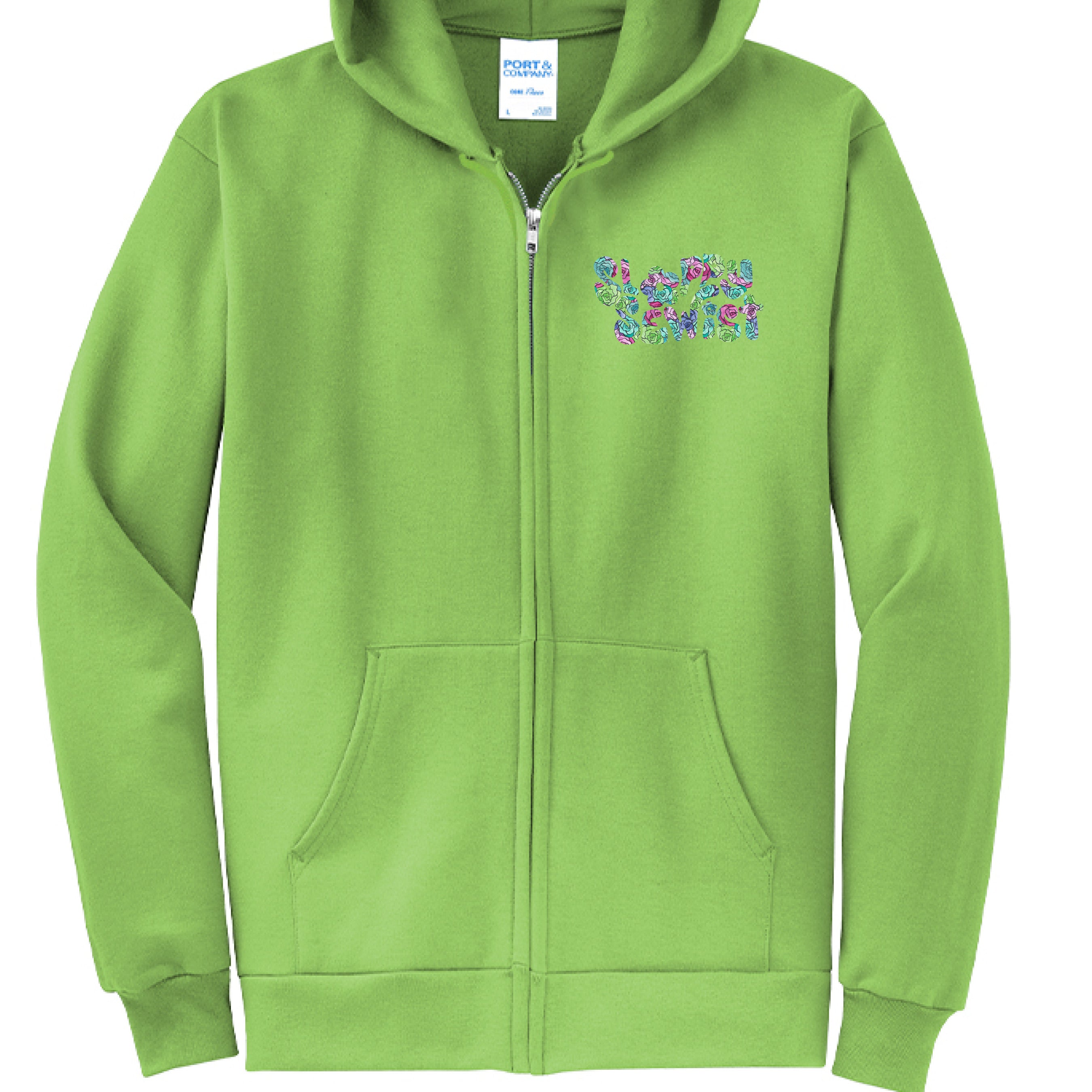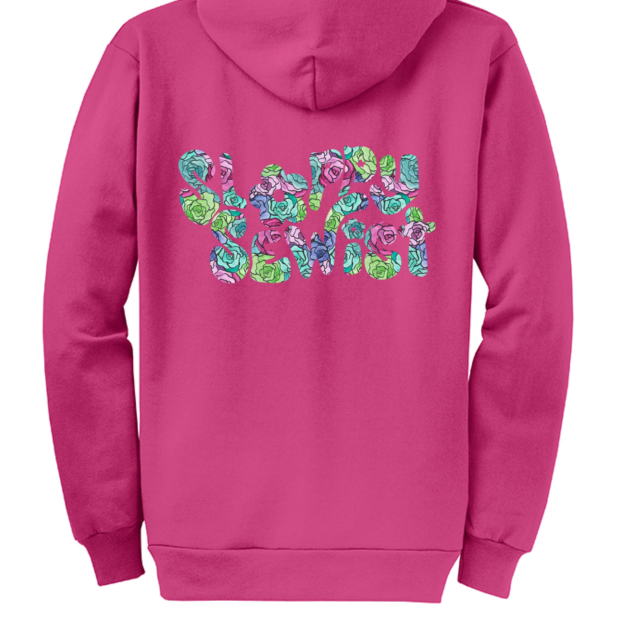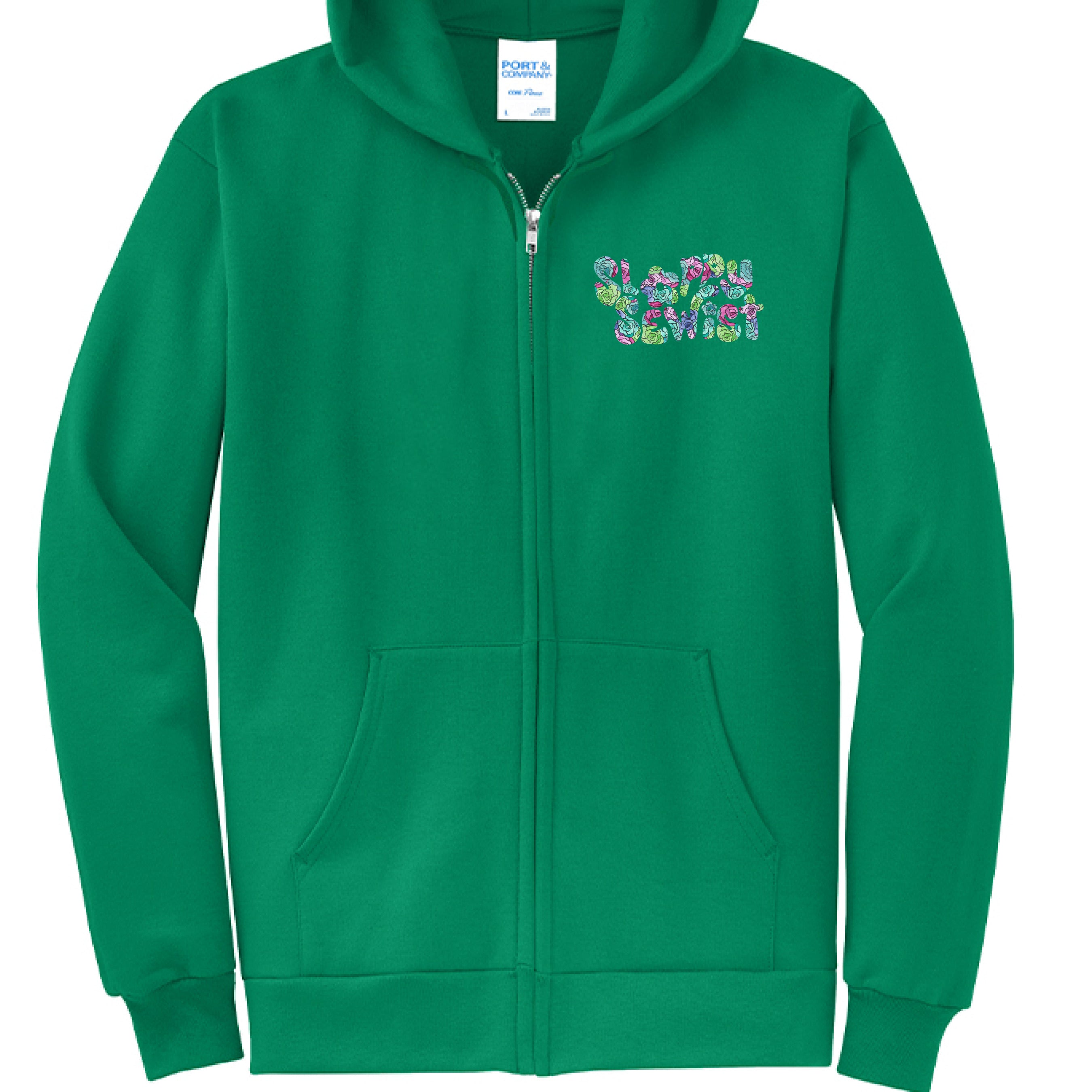 "Sloppy Sewist" Stained Glass Roses - Core Fleece Full-Zip Hooded Sweatshirt