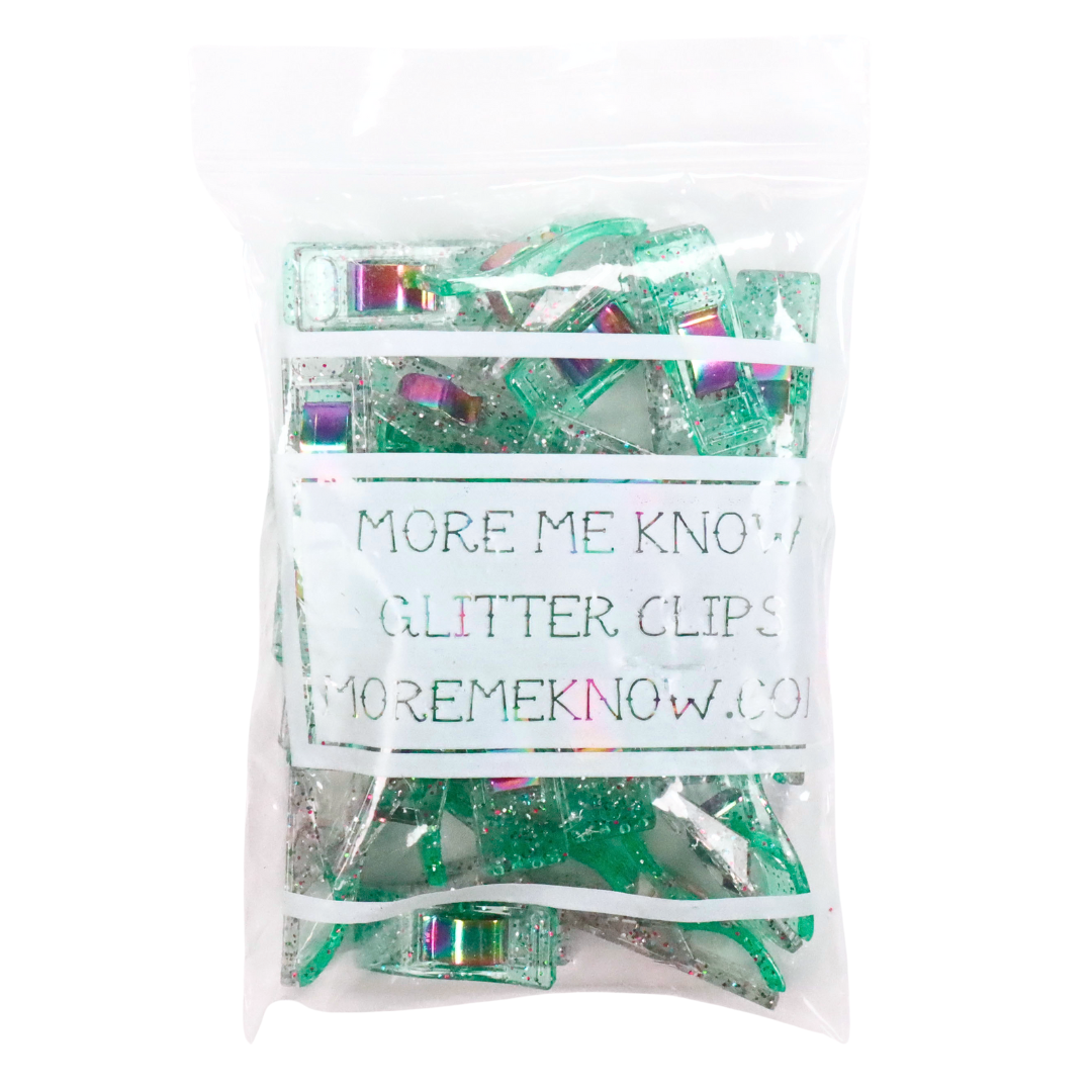 More Me Know Glitter Clips were designed in 2021. I was sewing, using the standard clips and had an epiphany. What if these were rainbow metal? What if they had glitter? What if they were some of the cutest colors imaginable?