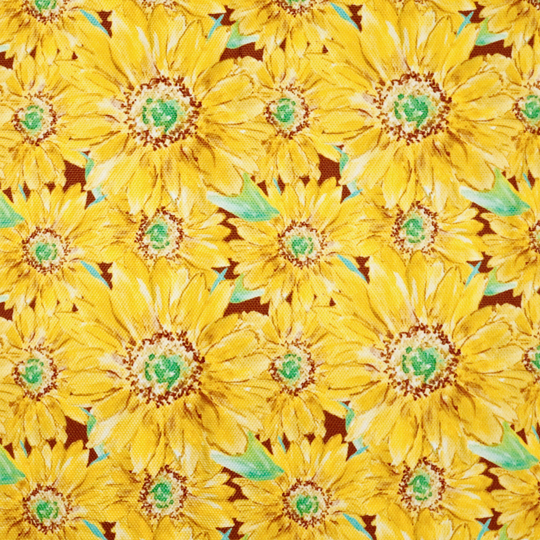 This WPC print is of Lauren Mormino's original artwork of sunflowers on a brown background.