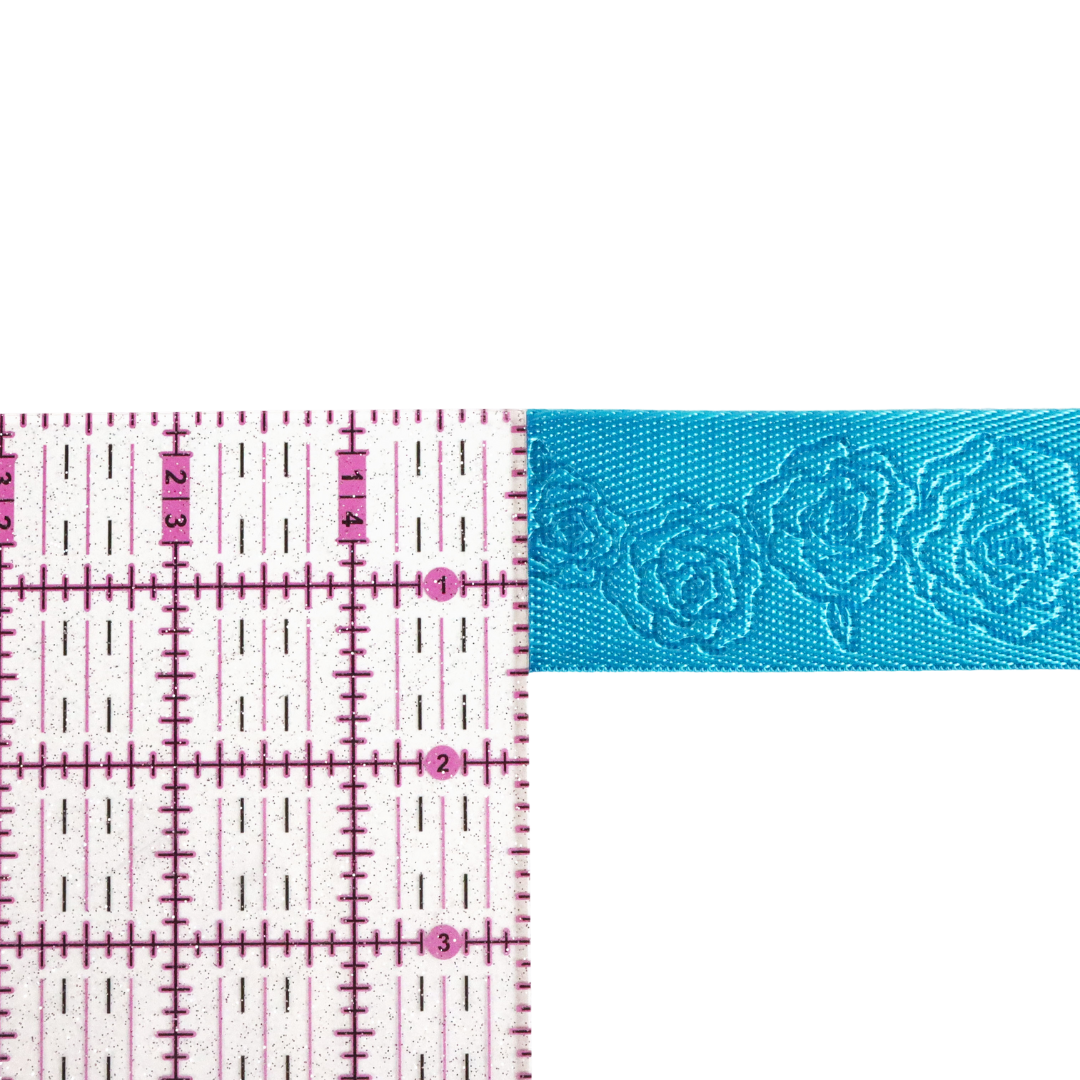 1.5" Cyan Blue Debossed Roses | Webbing - 3, 5, or 10 Yard Cut
