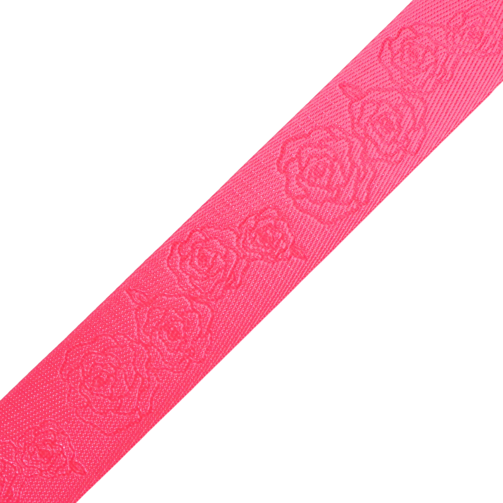 1.5" Fluorescent Pink Debossed Roses | Webbing - 3, 5, or 10 Yard Cut