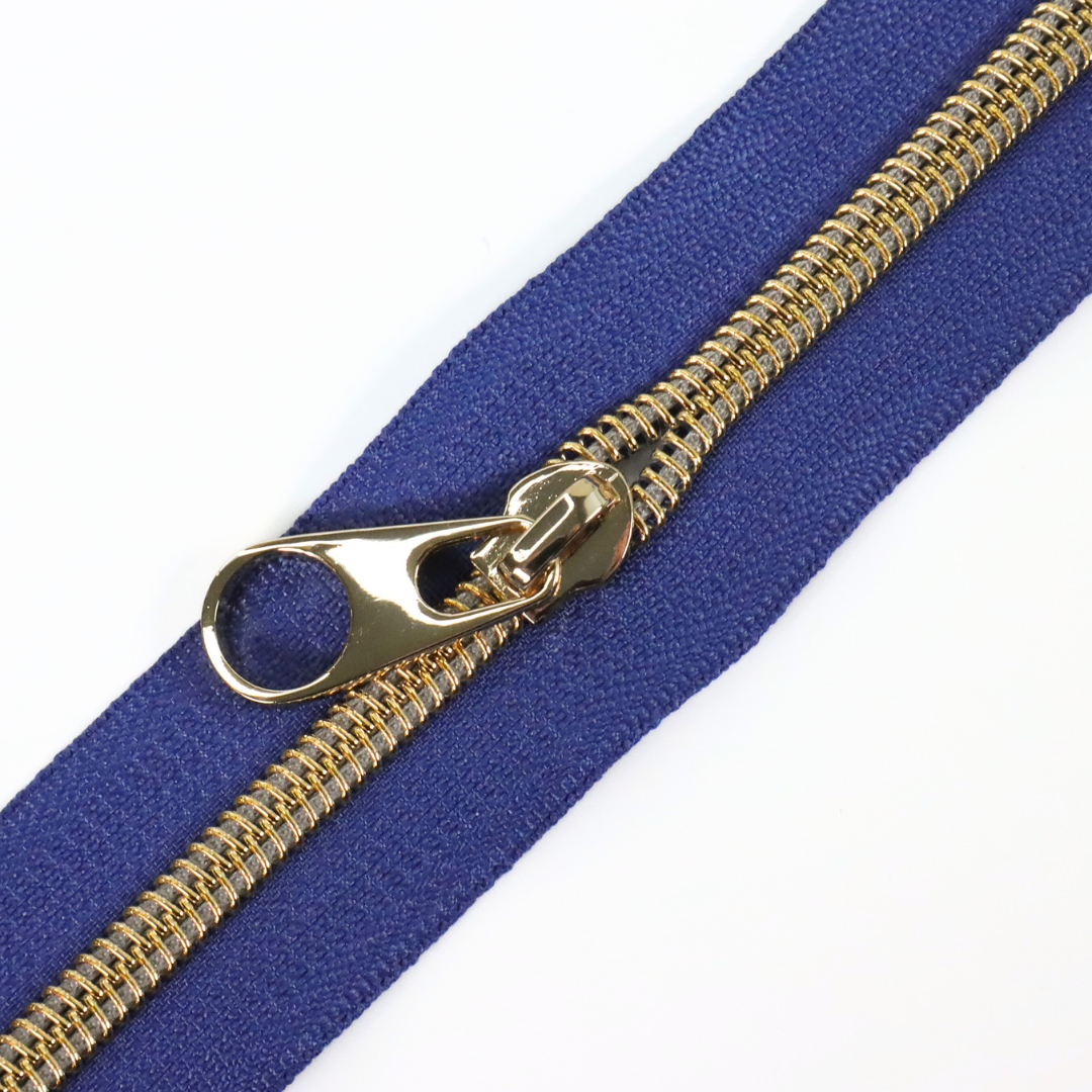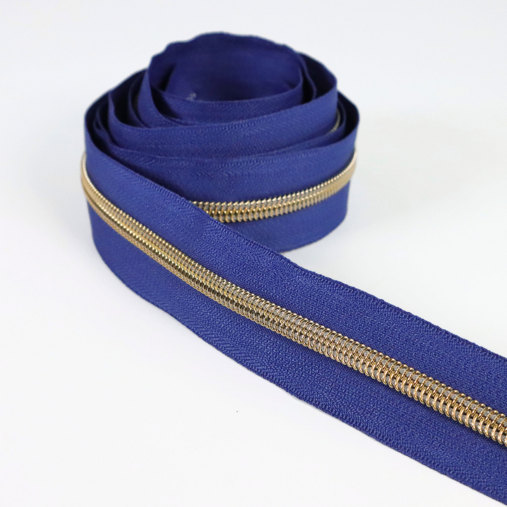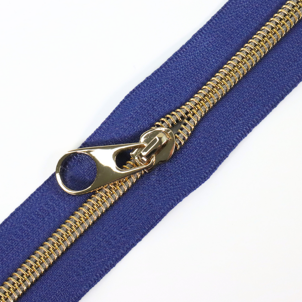 Future Dusk Blue | #5 Light Gold Zipper by the Yard - 3 Yard Singles
