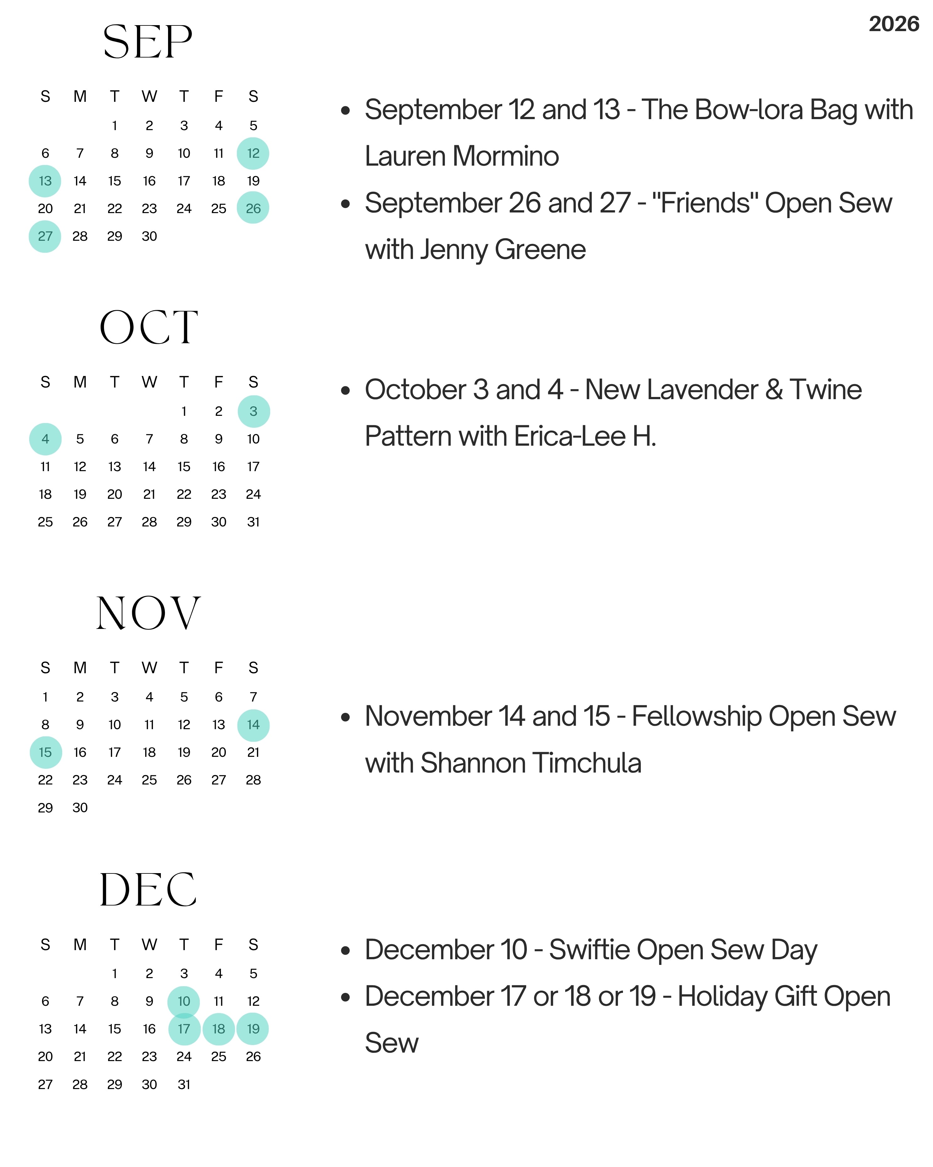 Our goal is to provide a stress-free class space to learn bagmaking. We do not want any students to feel rushed or like they weren't able to get their questions answered. We have worked tirelessly to make sure this is a safe and welcoming space to all who enter. <3 We thank you for your trust and support and cannot wait to see you there!